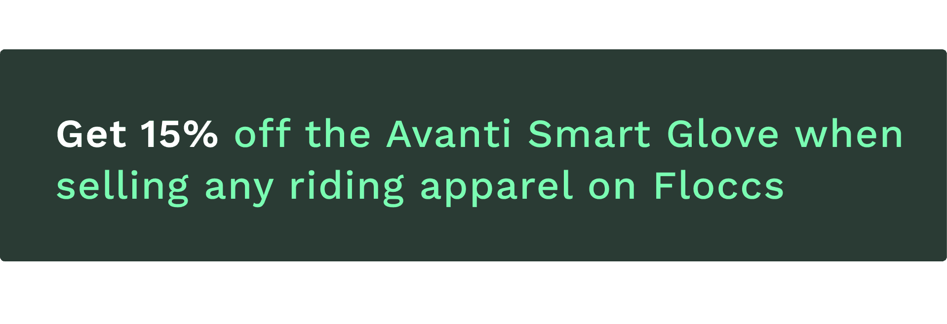 Sustainability in equestrian sport is close to our heart. We’re partnering with Floccs to encourage circular fashion — and to reward riders who care about the environment. When you sell one piece of riding apparel on Floccs, you’ll receive 15% off our bestselling Avanti Smart Glove!