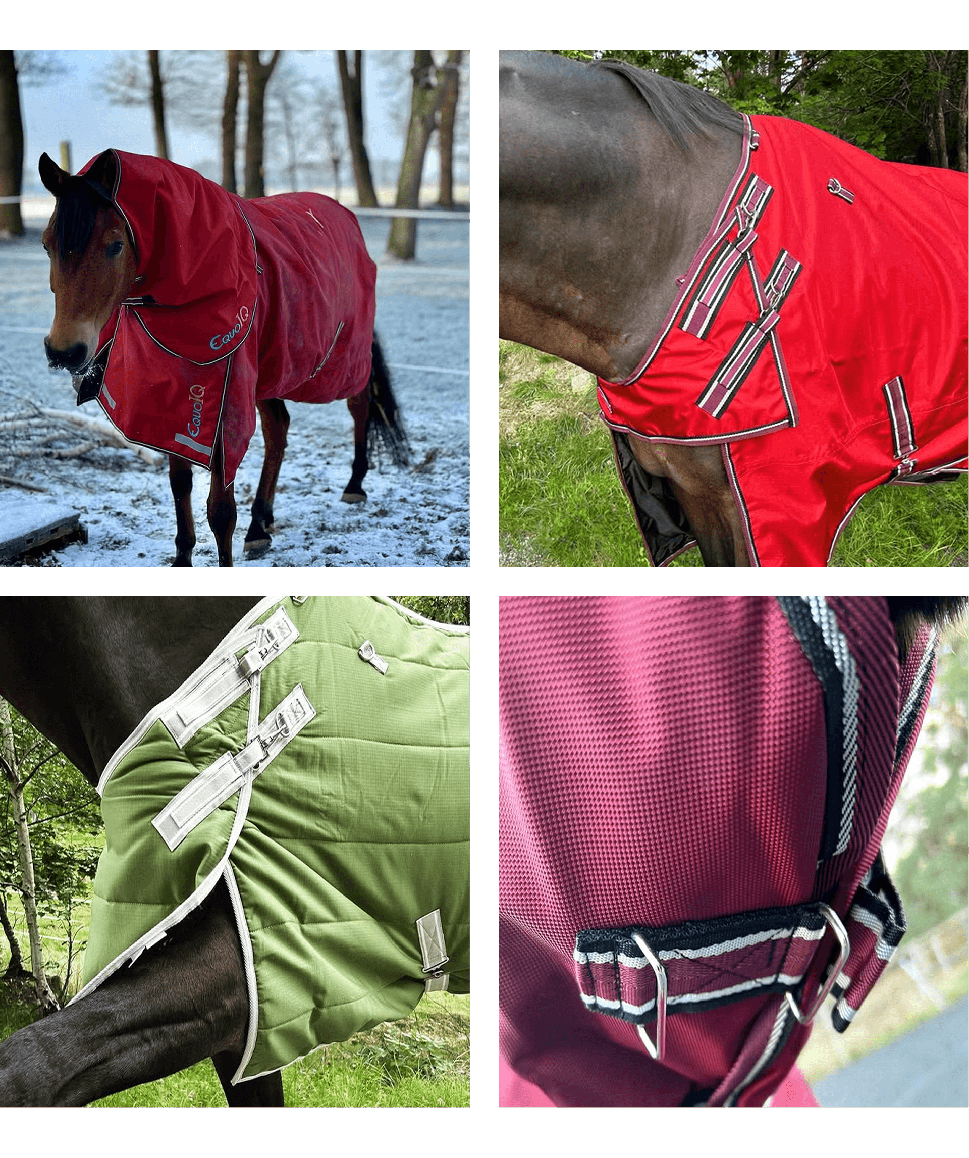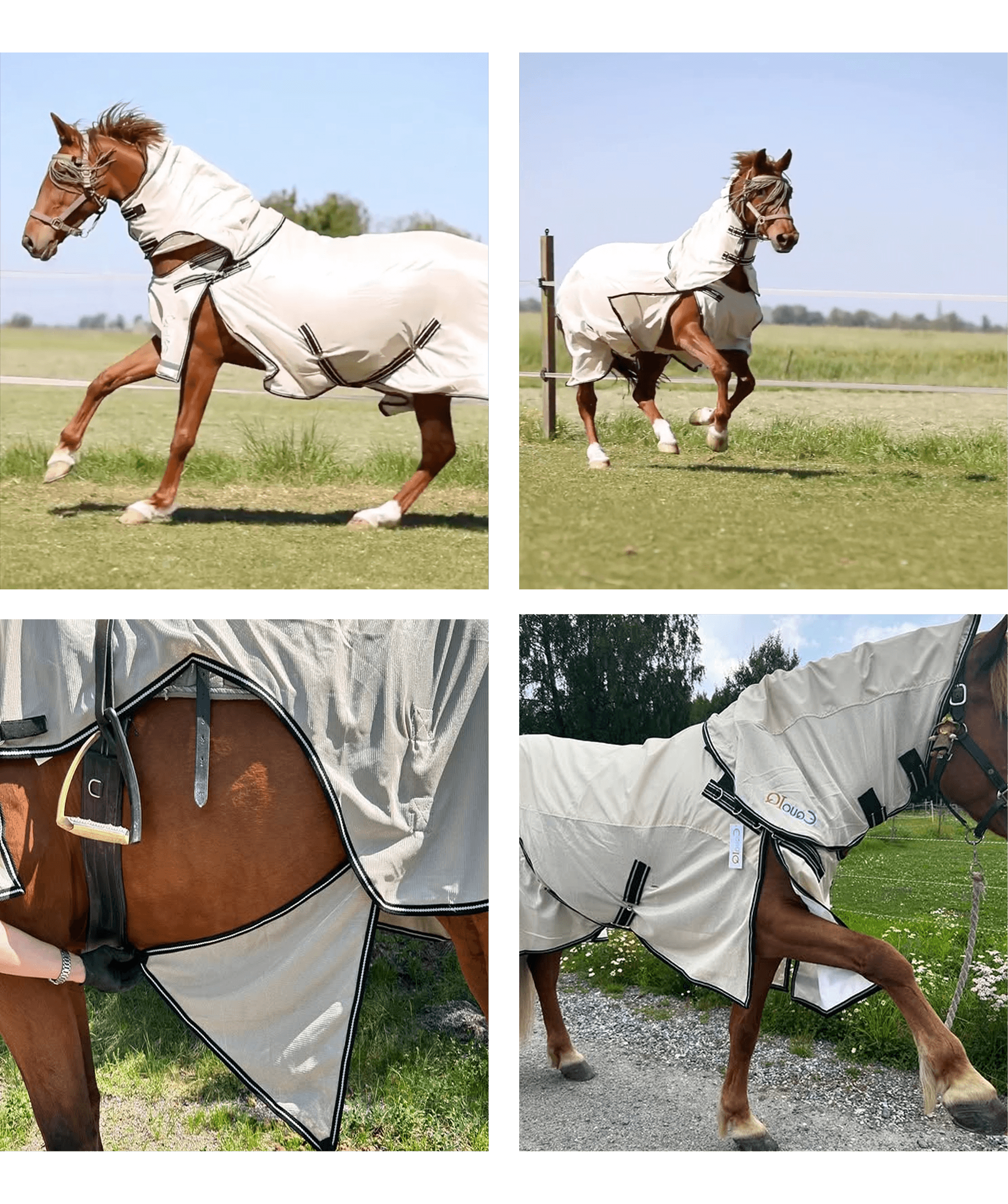 Our blankets are designed to provide maximum freedom of movement while minimizing the risk of chafing. The unique shoulder construction, where the blanket is attached on each side of the horse’s shoulder blade, enhances shoulder mobility. Additionally, our neck covers are designed to reduce mane wear with sewn-in loops along the crest that lift the fabric and allow for better airflow.