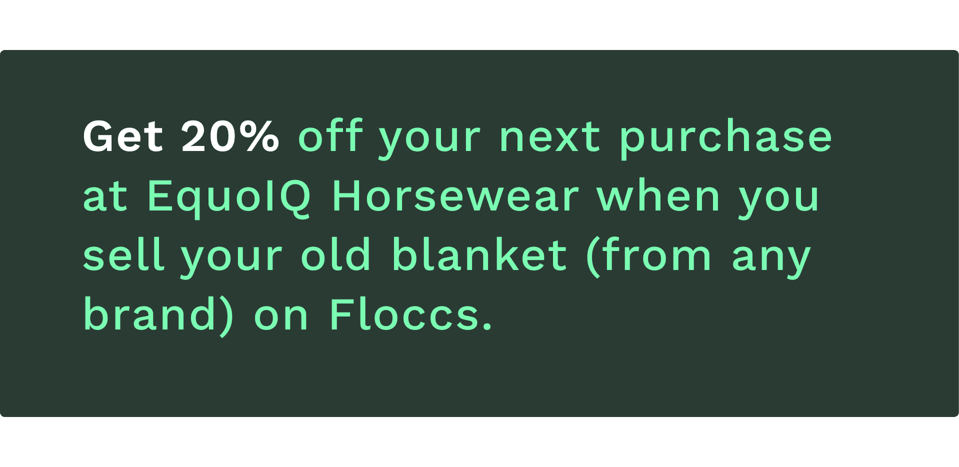 After your sale is completed, Floccs will send a 20% discount code directly to your email. Use the code for your next purchase in EquoIQ’s webshop.