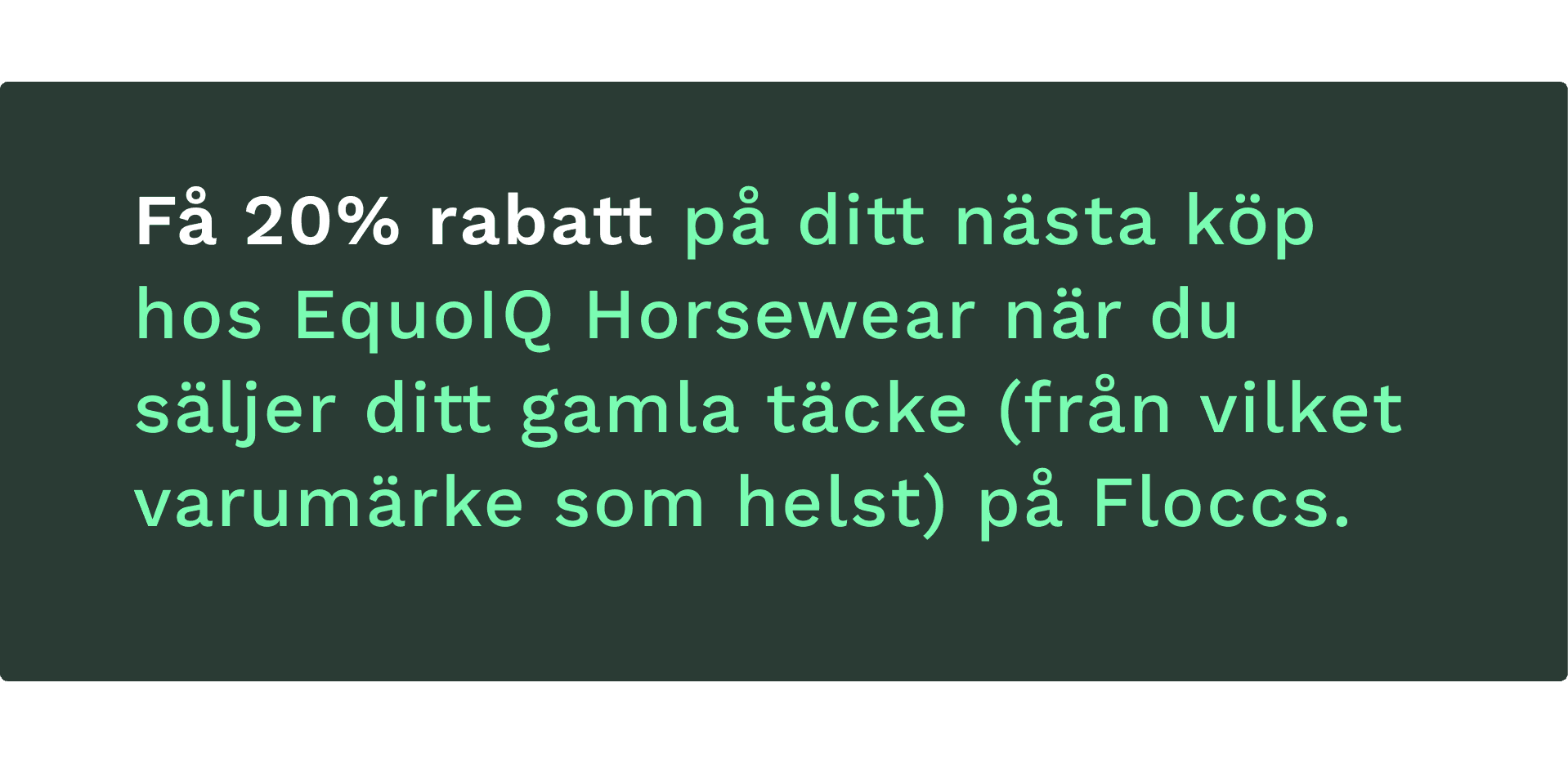 Efter avslutad försäljning skickar Floccs en rabattkod direkt till din e-post. Med koden kan du får du 20% på ditt nästa köp i EquoIQs webshop.