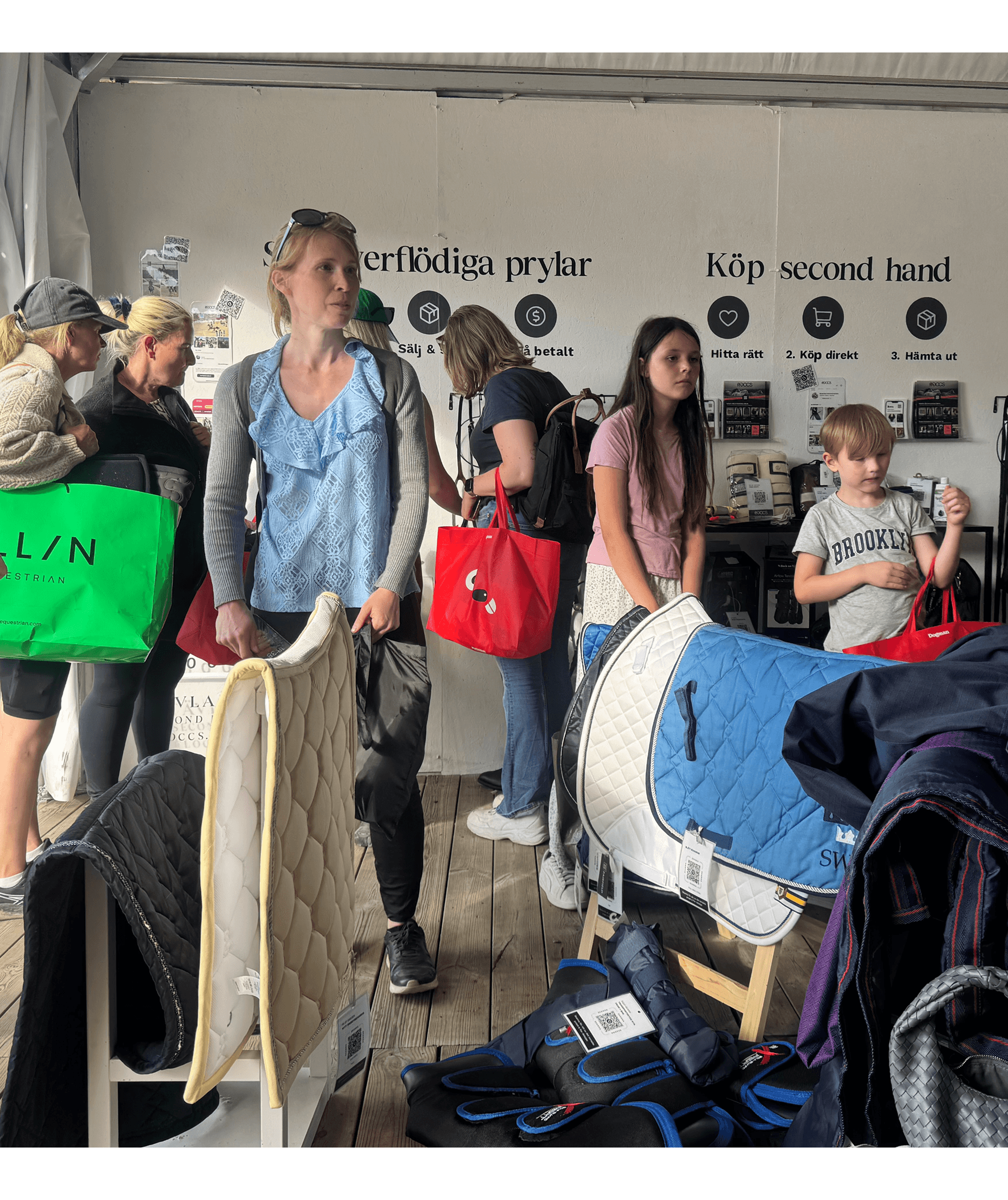 Intresset var större än vi vågat hoppas: hästannonserna väckte mest nyfikenhet, vår second hand-hörna fick fyllas på flera gånger, och det cirkulära tänket vi brinner för fick många att stanna och prata länge.