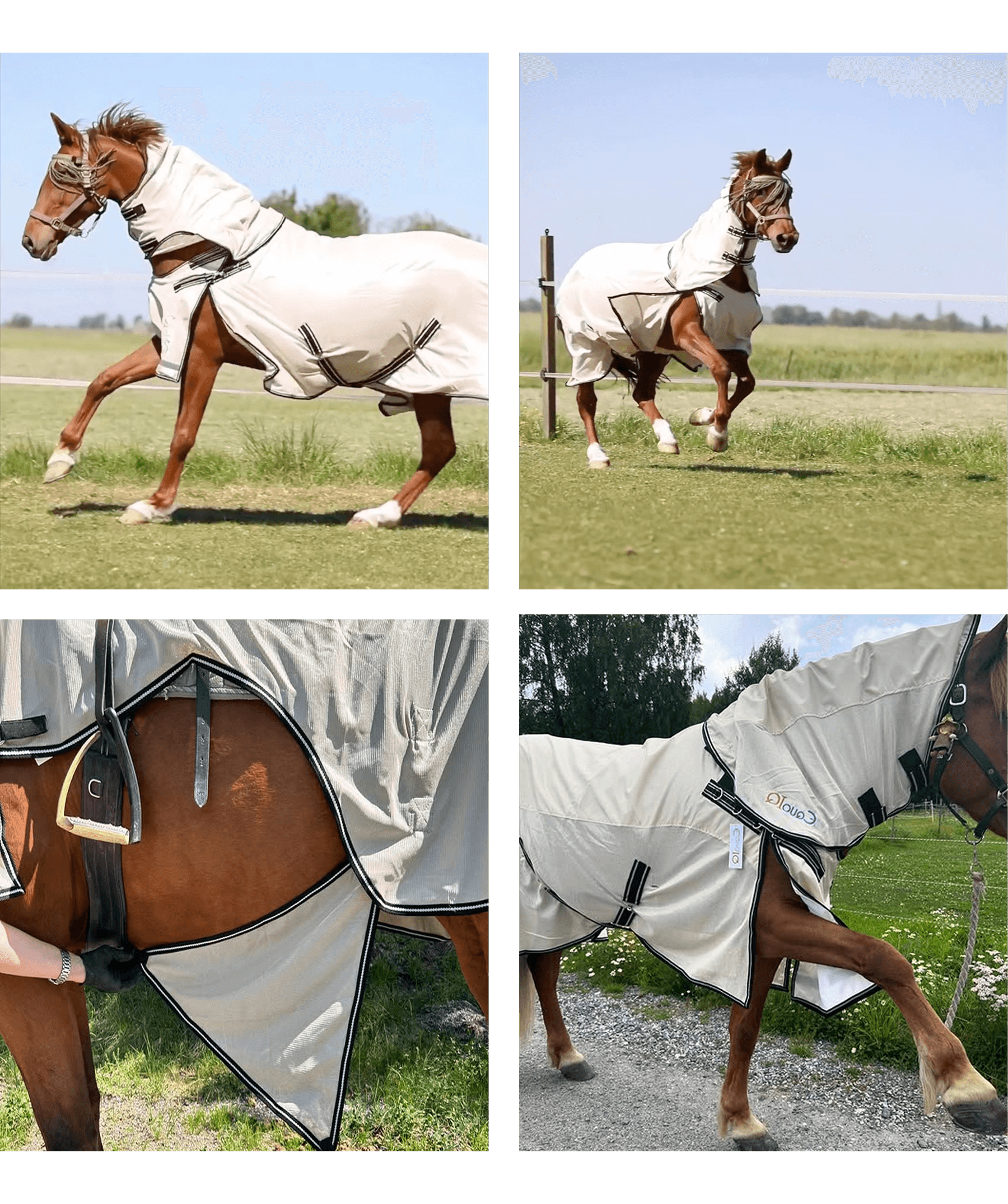 Våra täcken är designade för att ge hästar maximal rörelsefrihet och minimera risken för skav. Den unika konstruktionen av bogdelen, där täcket fästs på var sida om hästens bogblad, bidrar till ökad bogfrihet. Dessutom är halstäckena utformade för att minska slitaget på manen genom hällor längs mankammen som lyfter täcket och tillåter luftcirkulation.